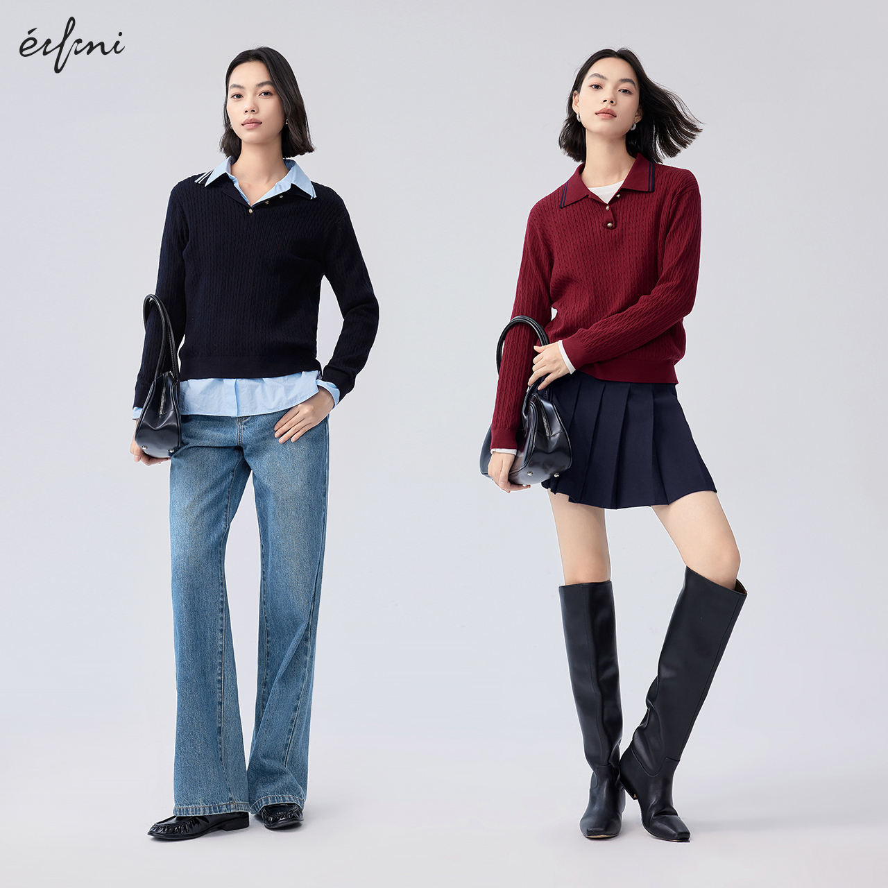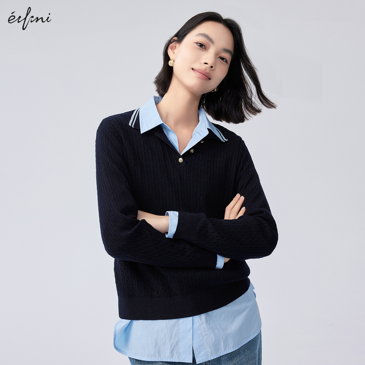 春秋套头毛衫 伊芙丽outlets店精梳棉毛针织衫 入会1件9折 女 0元