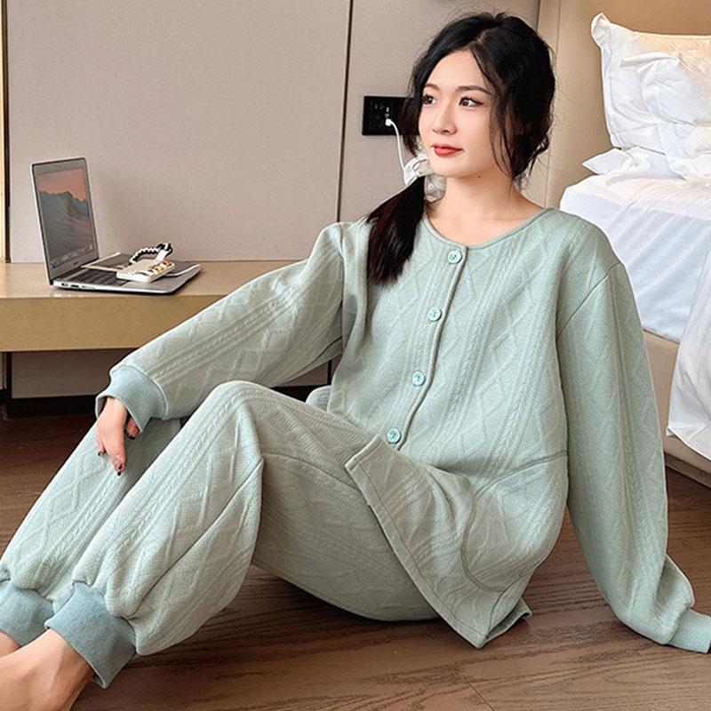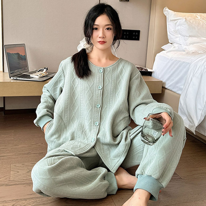 2025新款 秋冬200斤胖mm纯棉三层中等加厚家居服空气棉 睡衣女大码