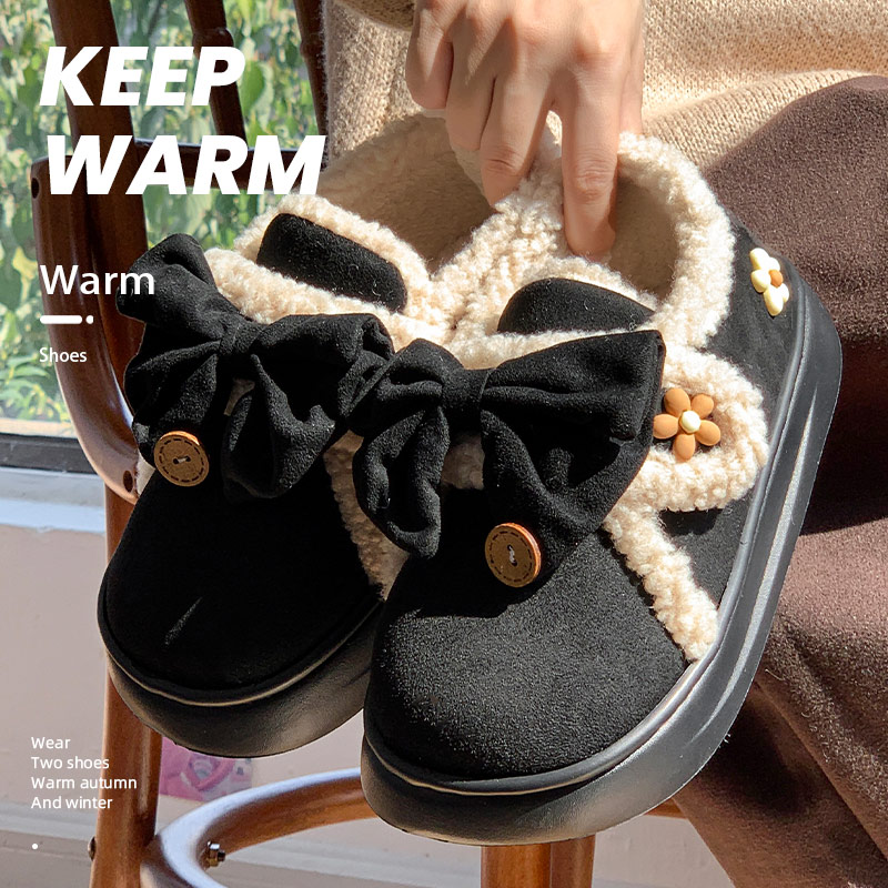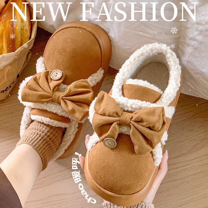 魔术贴棉鞋 新款 保暖加绒可外穿厚底 女冬季 小香风麂皮绒包跟棉拖鞋