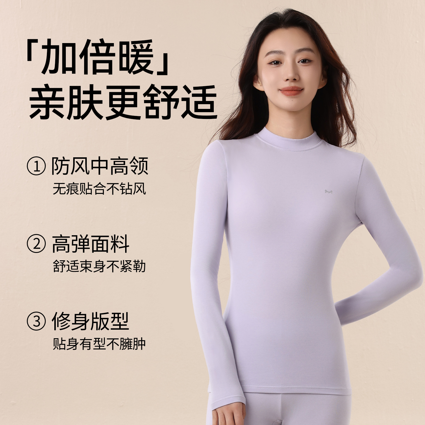 玻尿酸抗菌内搭打底冬季 纯棉半高领打底衫 保暖 女套装 猫人秋衣秋裤
