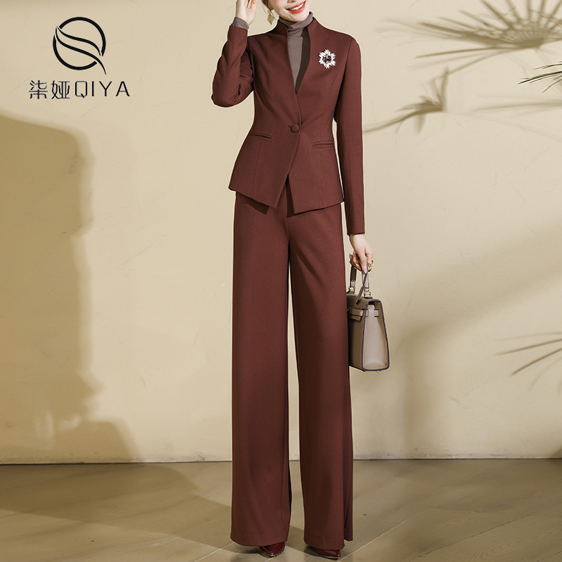 减龄职场小外套阔腿裤 2025年新款 两件套 女春季 气质干练咖色套装