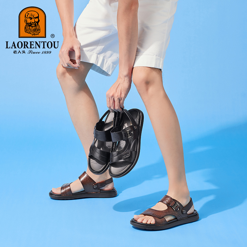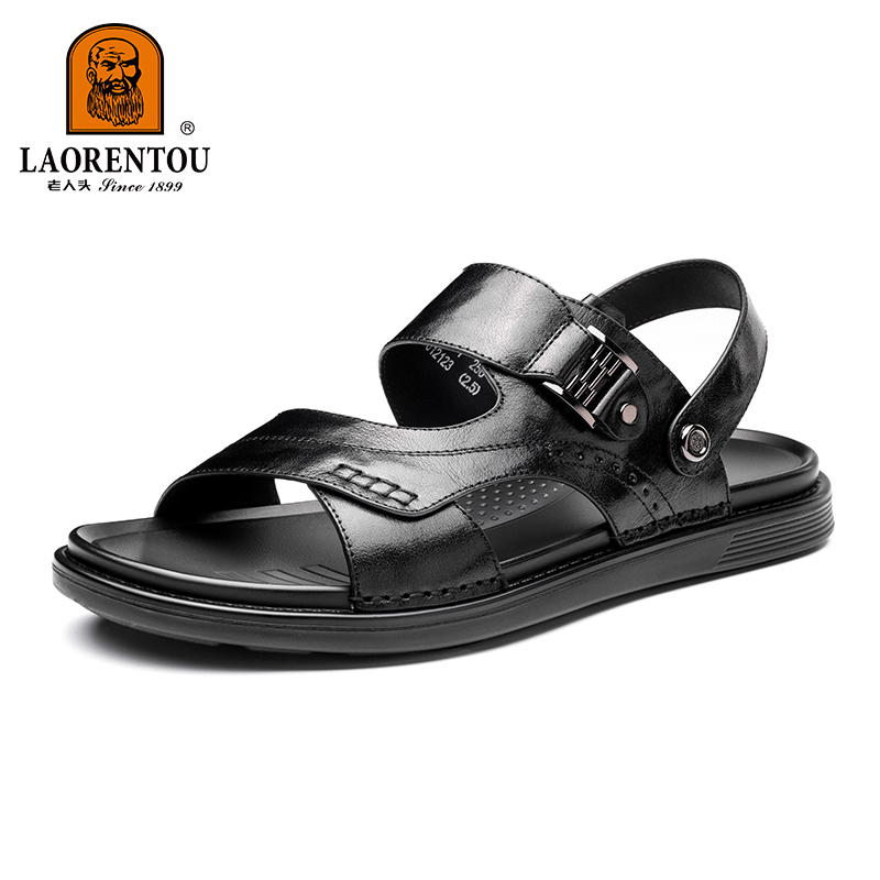 凉鞋 男真皮两穿凉拖鞋 2025新款 外穿拖鞋 夏季 老人头头层牛皮男士