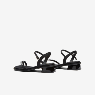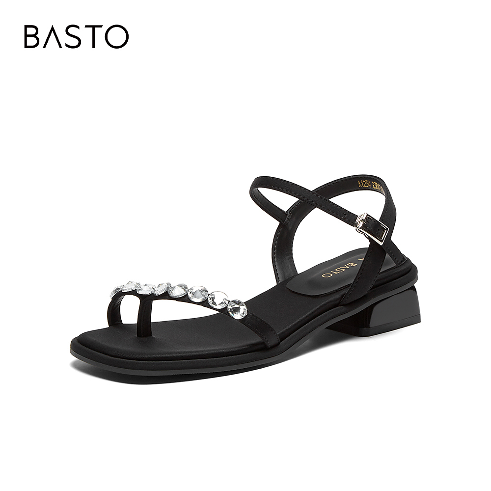 闪钻夹趾一字带舒适粗跟女凉鞋 时尚 A1234BL4 商场新款 百思图夏季