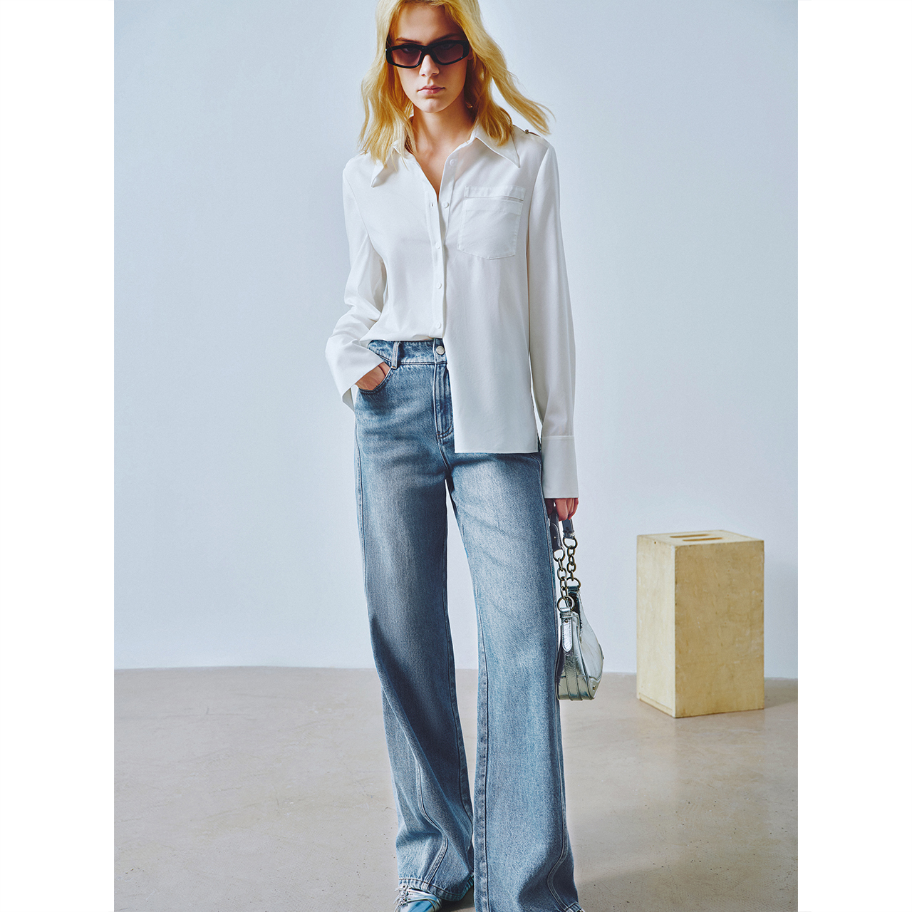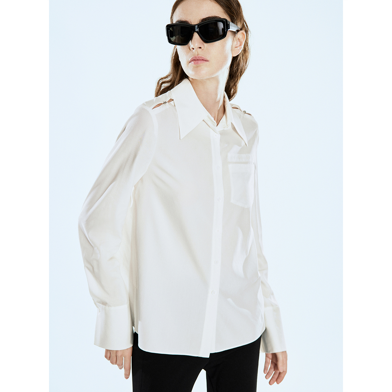 法式 HM女装 空调衫 秋季 宽松翻领牛津纺慵懒松弛感衬衣0925212 衬衫