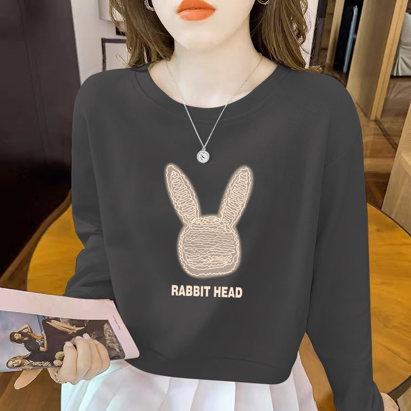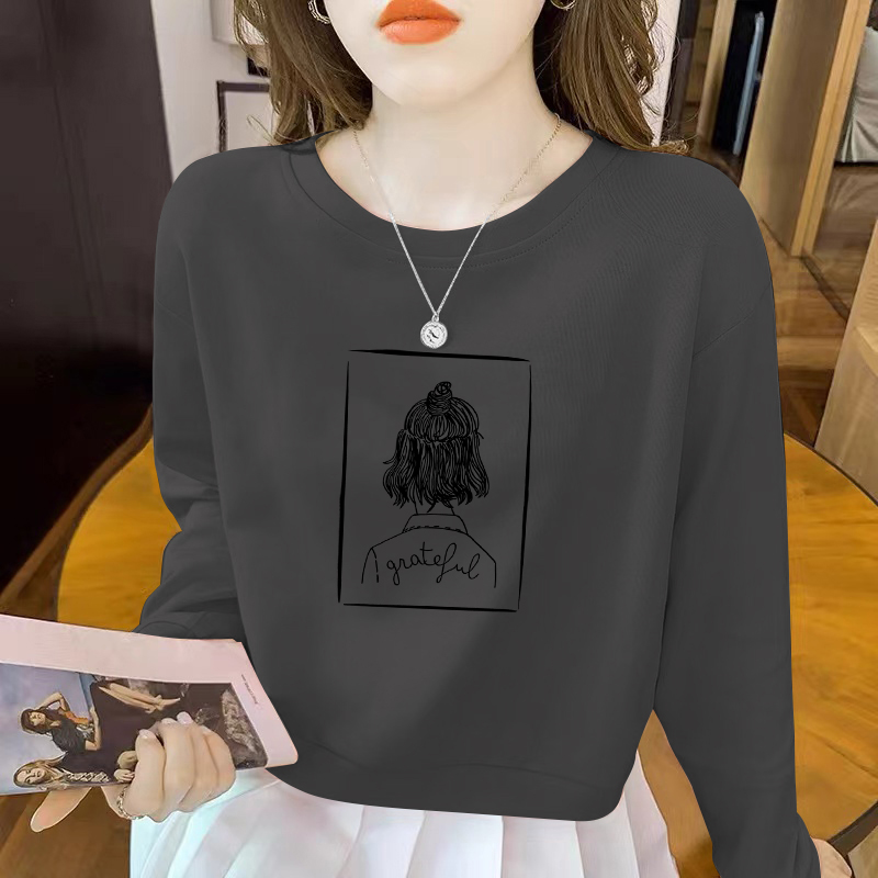 宽松圆领加绒小个子长袖 高腰短款 2023年新款 薄款 上衣 卫衣女春秋季
