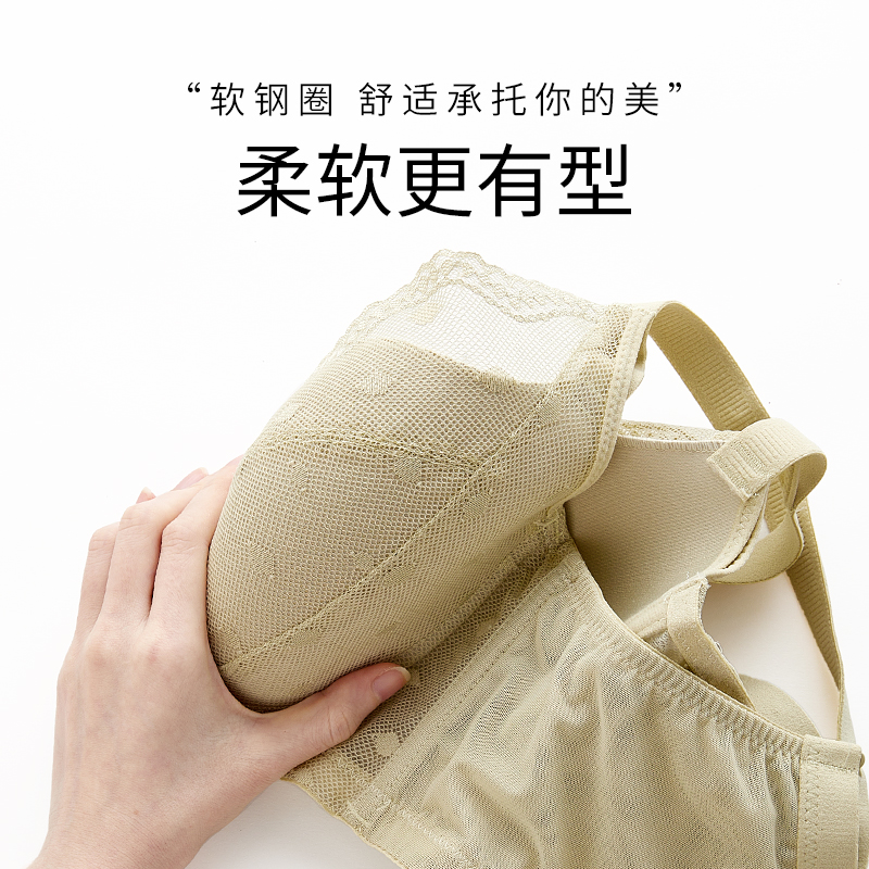 千奈美内衣女大胸显小文胸软钢圈上托聚拢收副乳调整型胸罩