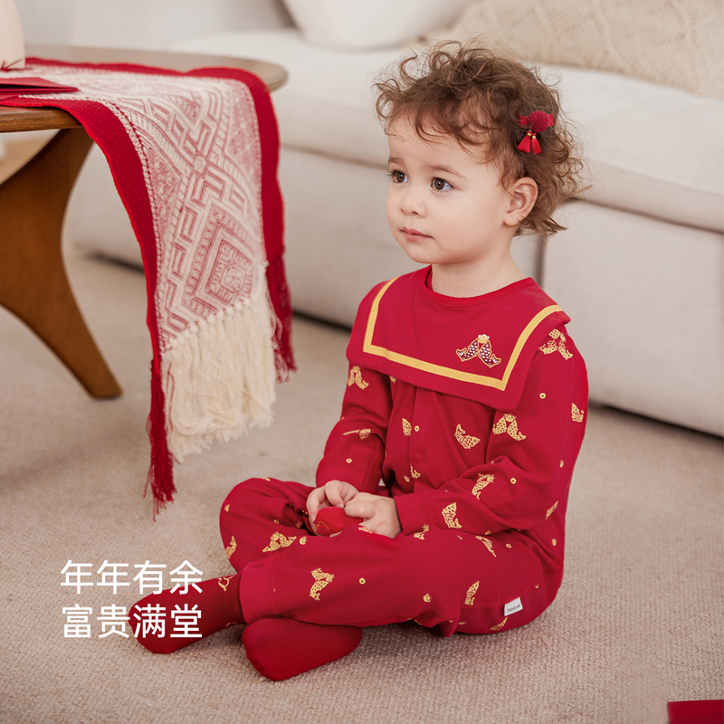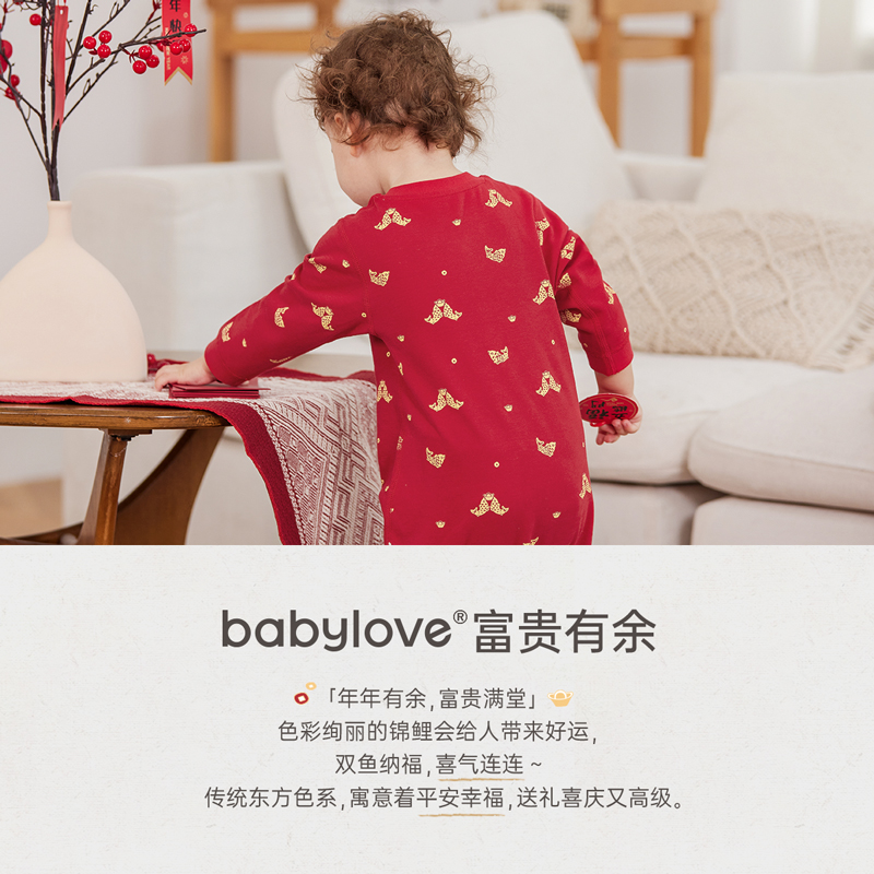 babylove婴儿连体衣秋冬纯棉满月宝宝哈衣新生儿周岁衣服富贵有余