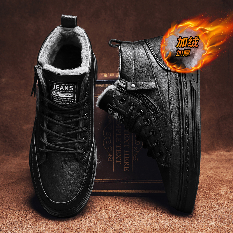 靴子 真皮防水厚底增高工装 森马马丁靴男秋季 高帮百搭休闲白色板鞋