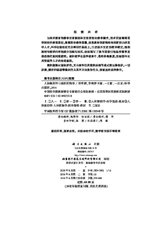 第2版 案例版 人体解剖学与组织胚胎学 供药学类专业用 直发