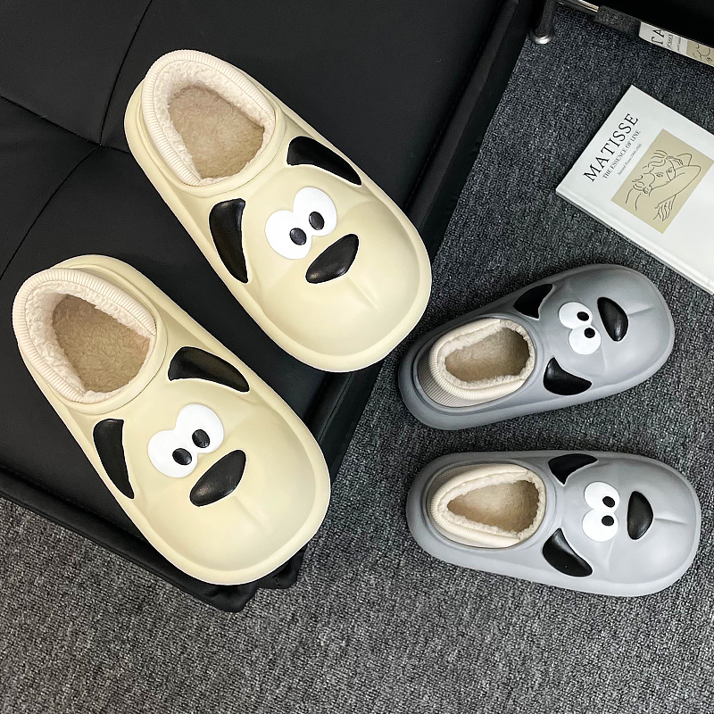 室内家居防滑保暖厚底外穿毛绒包跟棉拖女士冬 冬季 防水棉拖鞋 男士