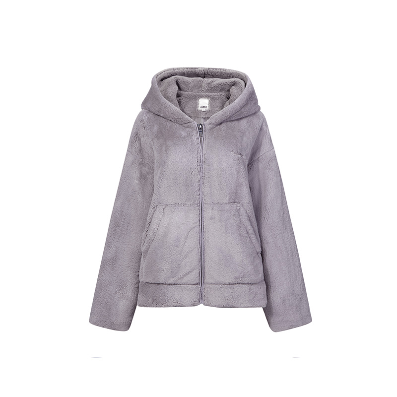 宽松毛呢连帽衫 GUUKAHERO灰色仿兔毛卫衣外套女 格雷系羊羔绒冬季