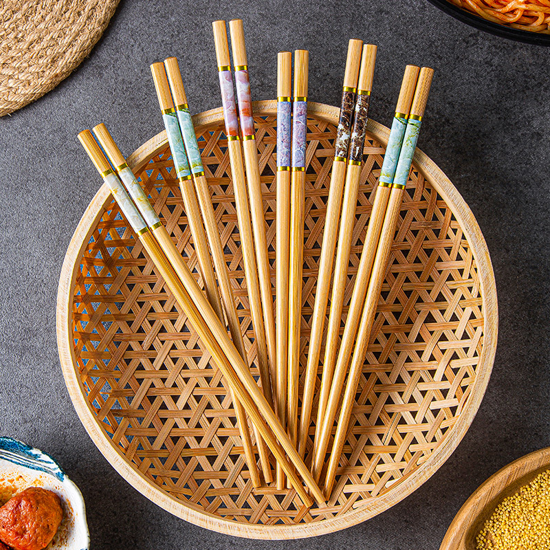 天然楠竹筷子家用实木防滑高档抗菌防霉耐高温加长火锅筷子油炸快