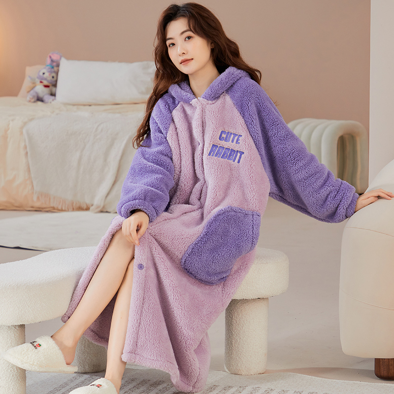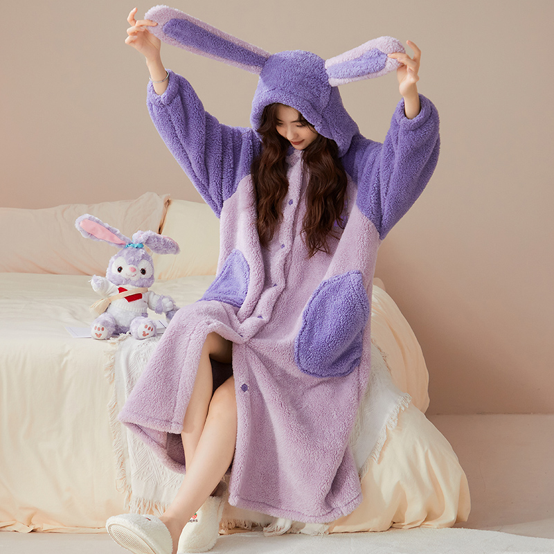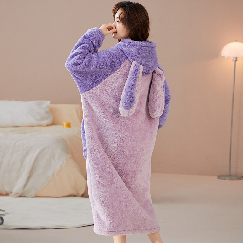 睡袍长款 秋冬季 加绒加厚法兰绒家居服 南极绒睡衣女 可爱少女新款