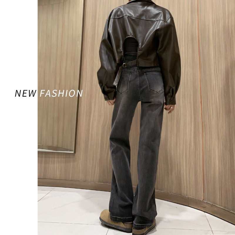 女2025年夏季 阔腿裤 薄款 黑灰色弹力宽松窄版 子 爆款 高腰直筒牛仔裤