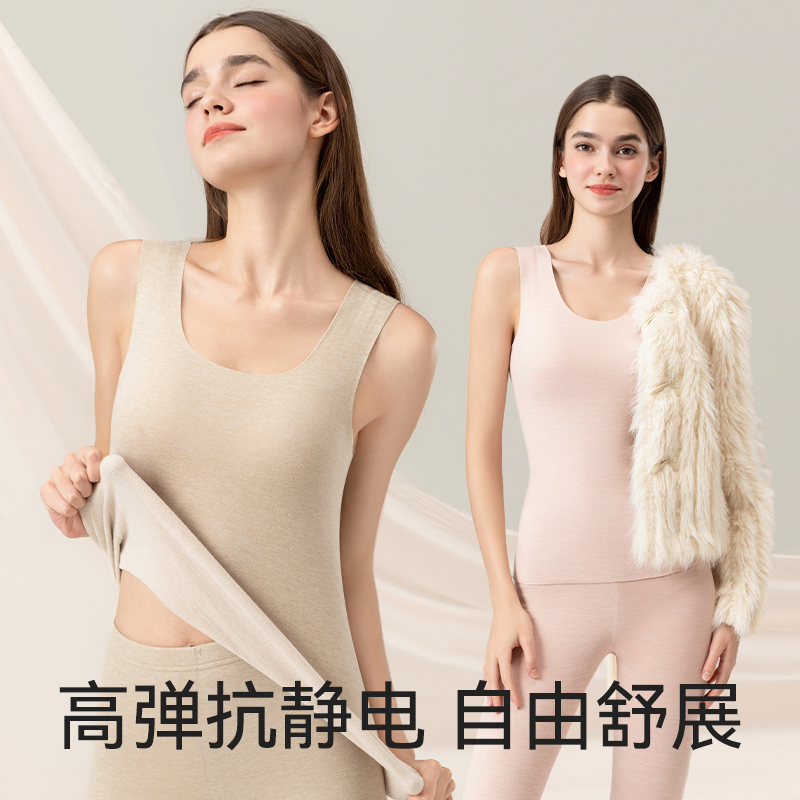 猫人保暖背心女士2025新款 无痕德绒加厚羊绒蚕丝吊带打底内衣秋冬