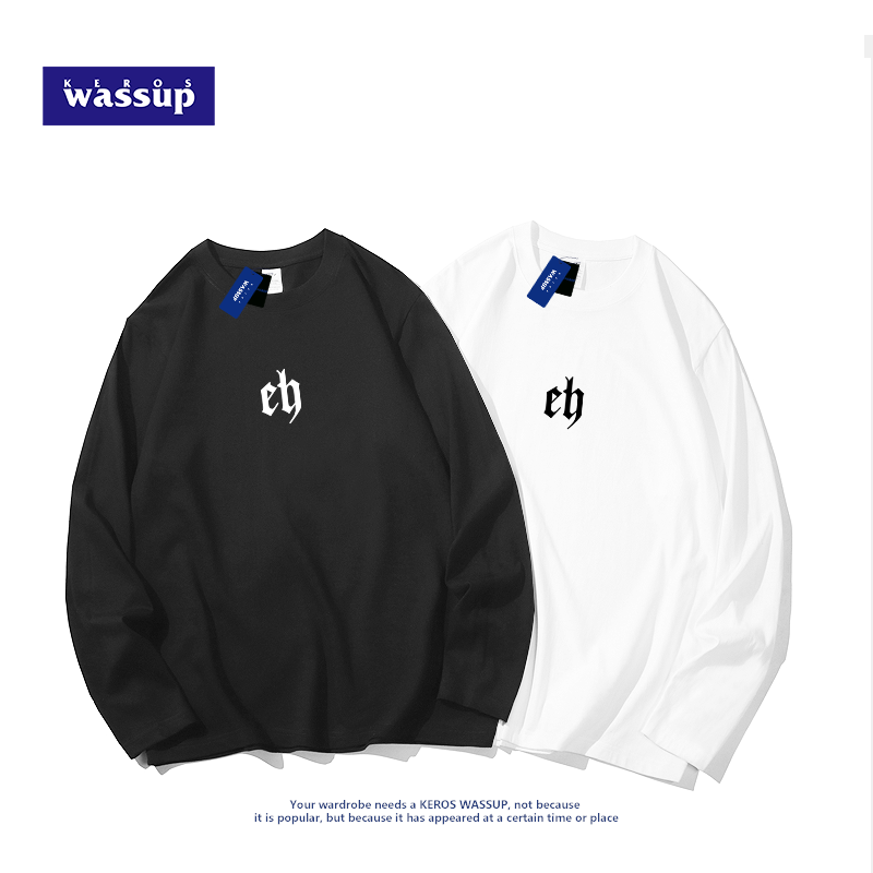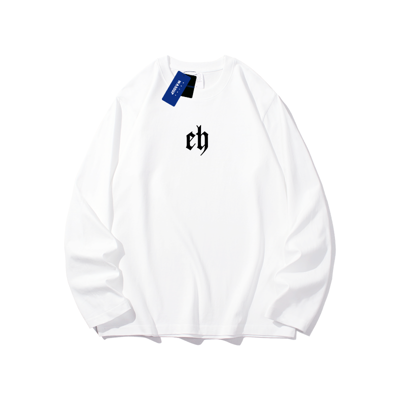 重磅高端潮牌纯棉白色印花宽松圆领打底衫 T恤男内搭上衣服白t 长袖