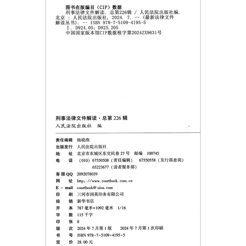 2024新书 人民法院出版 刑事法律文件解读 2024年第4辑 社9787510941955 总第226辑 正版