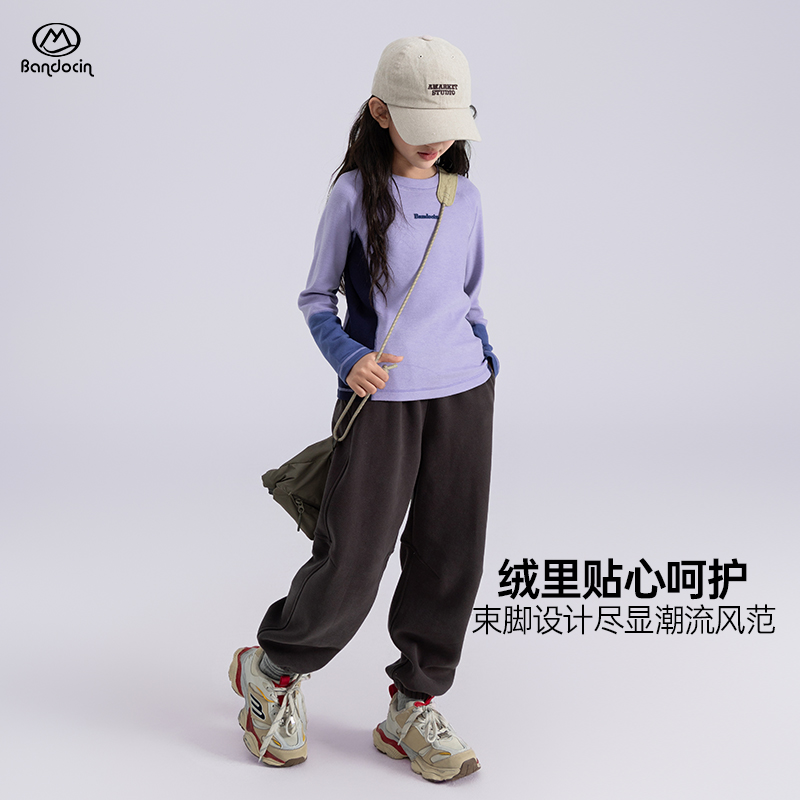 百搭宽松休闲哈伦裤 2025秋冬新款 子 女条纹拼接束脚运动裤 欧货卫裤