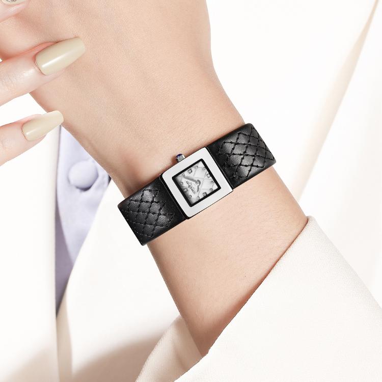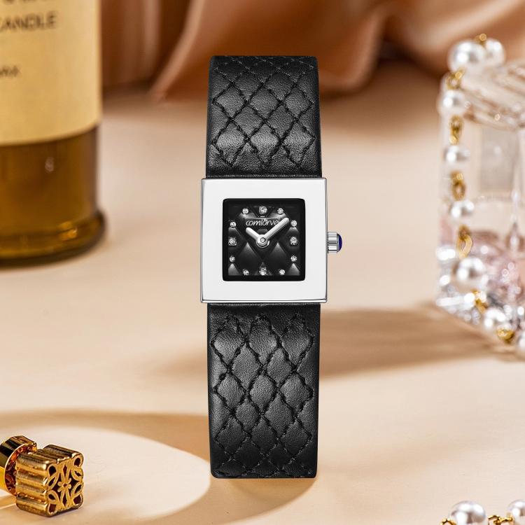 COMLORVEI康洛薇女士腕表小香风复古皮带小方表白色表盘女款 手表