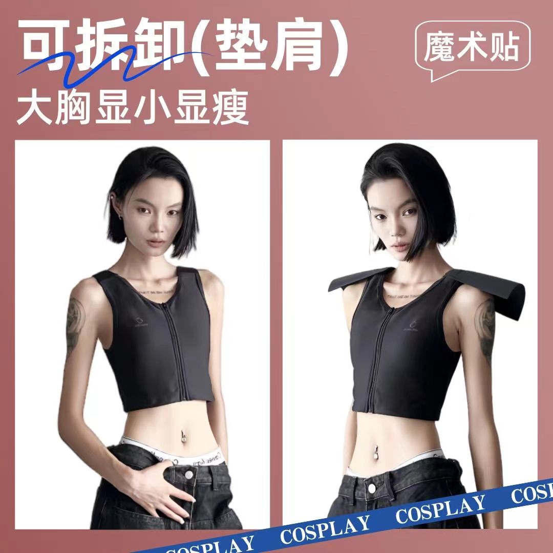 cos双开门魔术贴垫肩束胸内衣直角宽肩大胸显小防下滑可拆卸肩垫