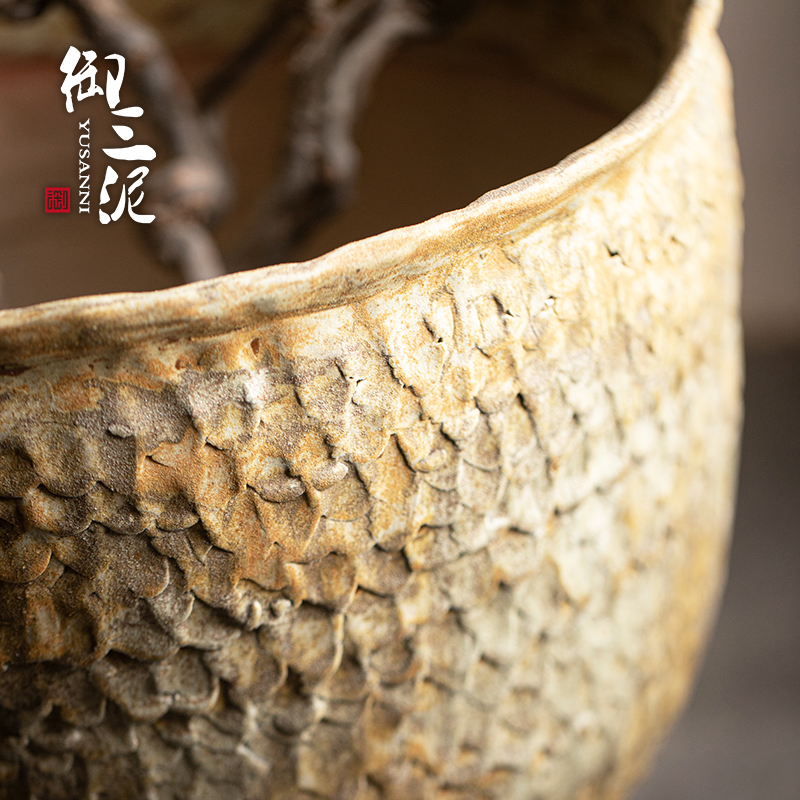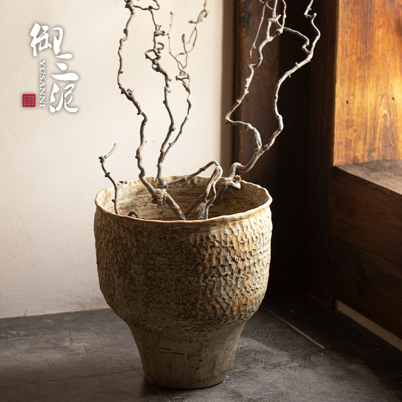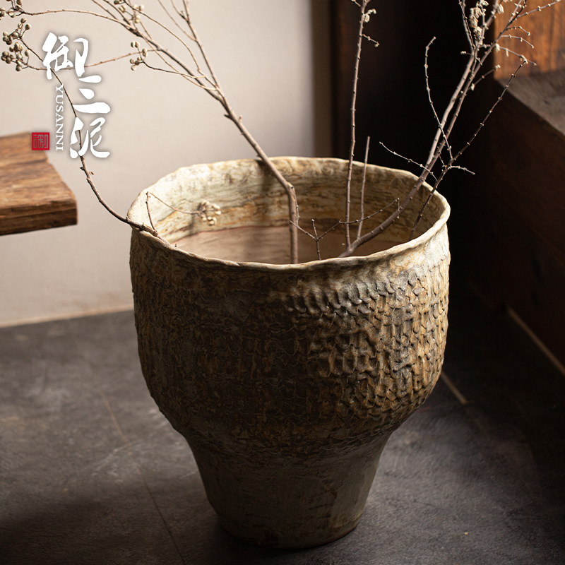 御三泥侘寂风落地大花瓶陶瓷客厅摆件软装 高级感复古风粗陶土陶罐