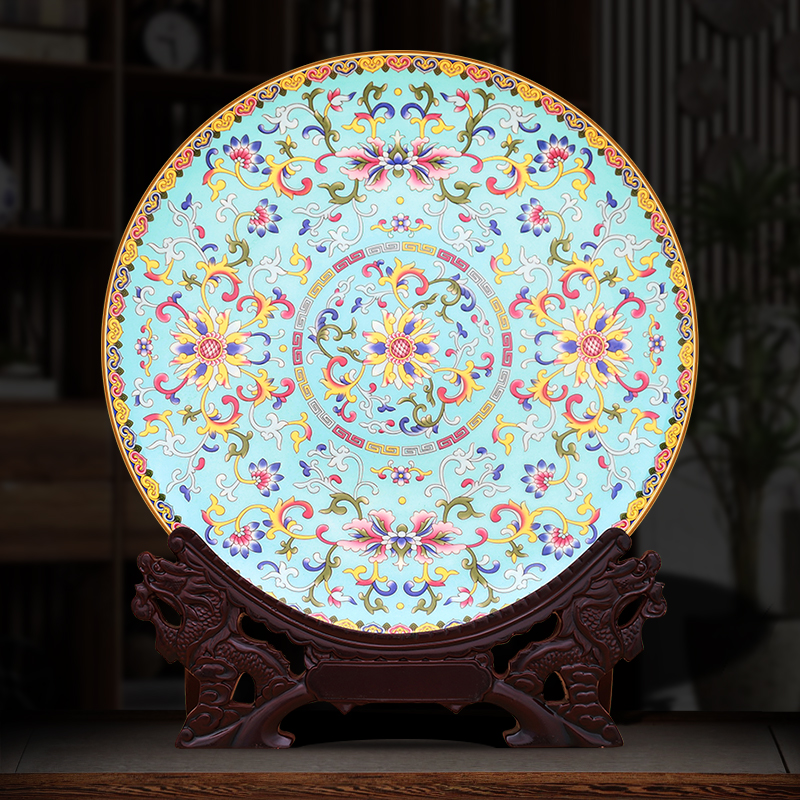 景德镇陶瓷器中式 珐琅彩工艺品客厅摆件玄关博古架办公室酒柜摆盘