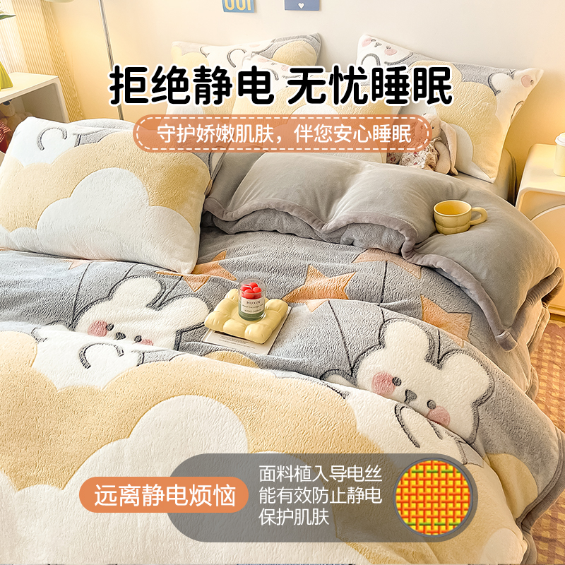 冬季 双面牛奶珊瑚绒被套单件150x200x230单独加绒法兰绒床单被罩4