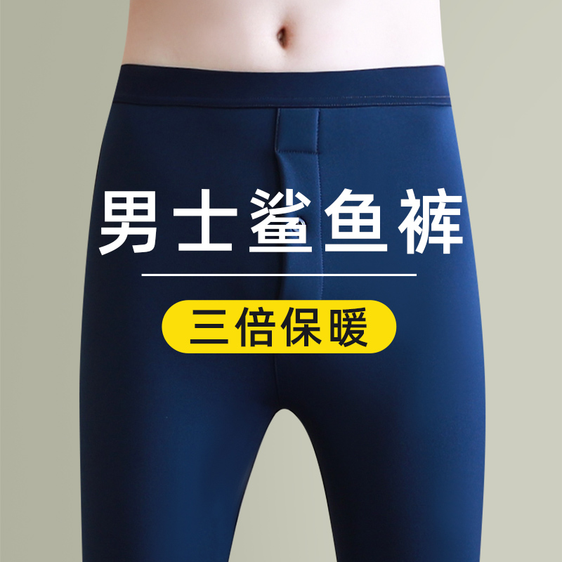 青年秋冬秋裤 秋冬新款 加绒潮流加厚运动弹力打底保暖裤 鲨鱼裤 男士