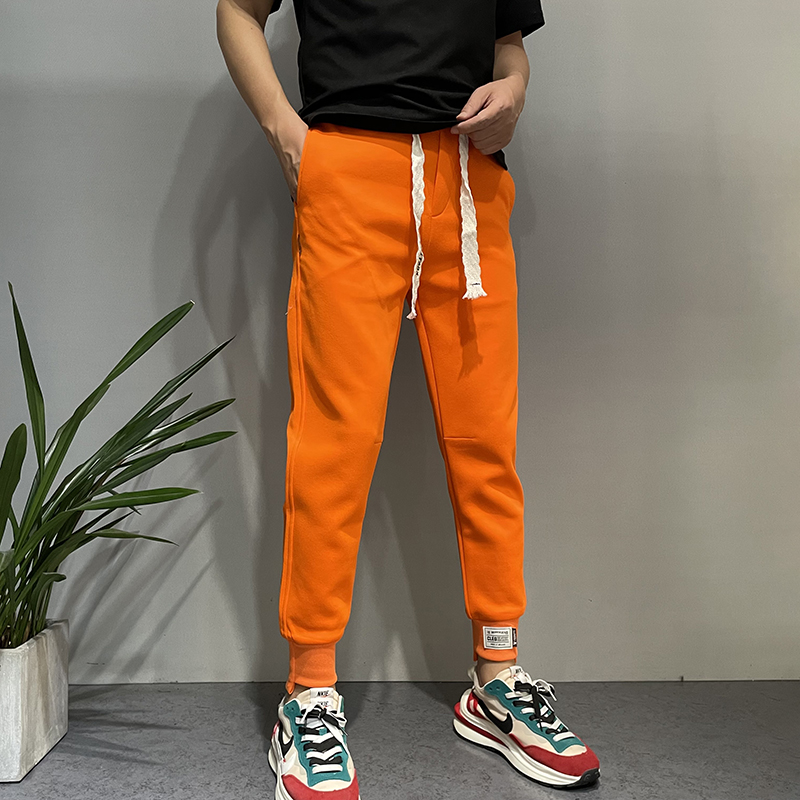 个性 时尚 运动束脚九分裤 痞帅潮流时尚 春秋桔色休闲裤 男裤 2025男士