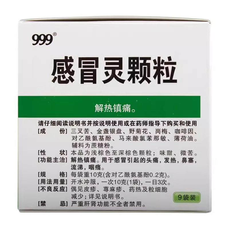 999感冒灵颗粒10g 9袋三九感冒冲剂镇痛鼻塞流咽痛感冒药头痛发热