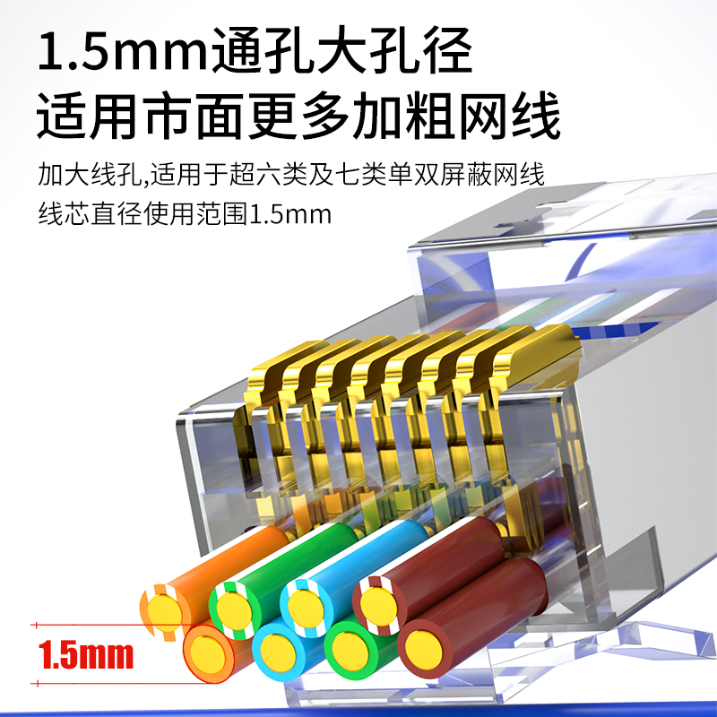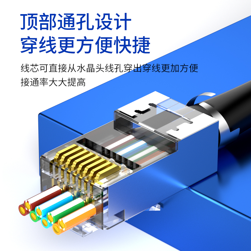 万兆网线水晶头七类穿孔式 超六类通孔屏蔽rj45网络监控接头CAT6A7