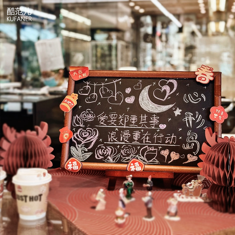 酷范儿桌面吧台菜单展示牌立式 木质手写小黑板家用冰箱贴展示板磁吸黑板粉笔荧光笔可擦定制尺寸 挂式