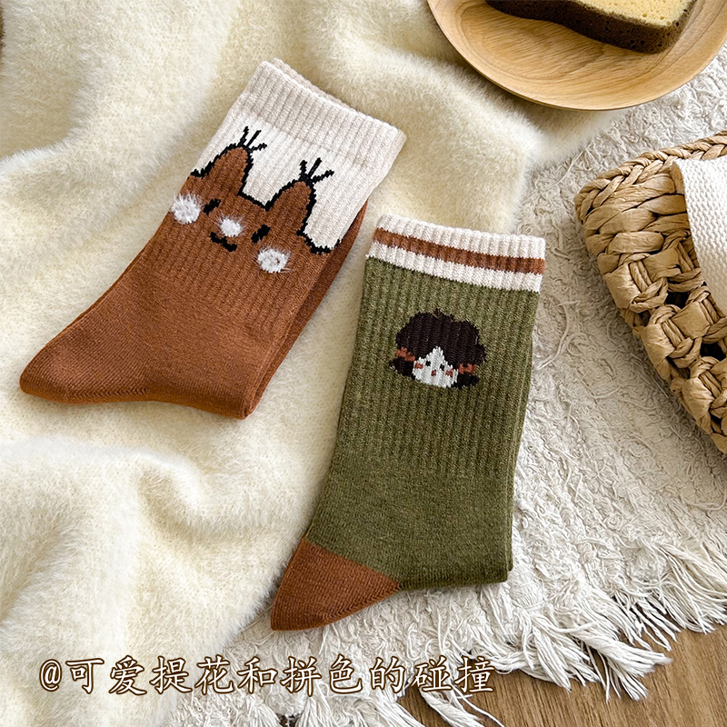 羊毛厚袜子女秋冬中筒袜加绒加厚保暖羊绒配德训鞋 长筒袜纯棉长袜