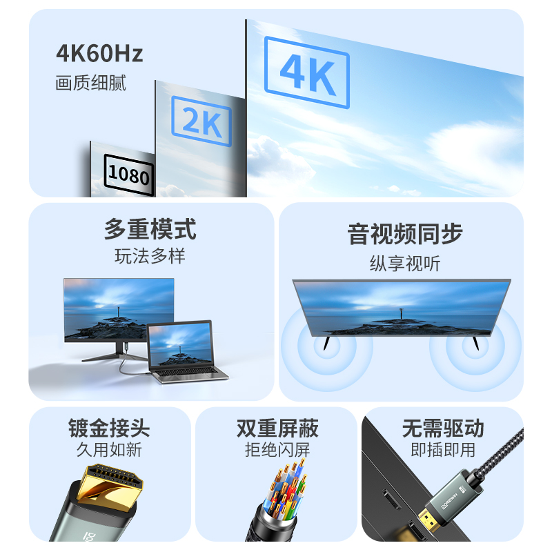 达而稳 typec转hdmi手机电脑电视8K同屏转换连接线笔记本安卓平板外接显示器投影仪4K高清数据投屏线适用悟空
