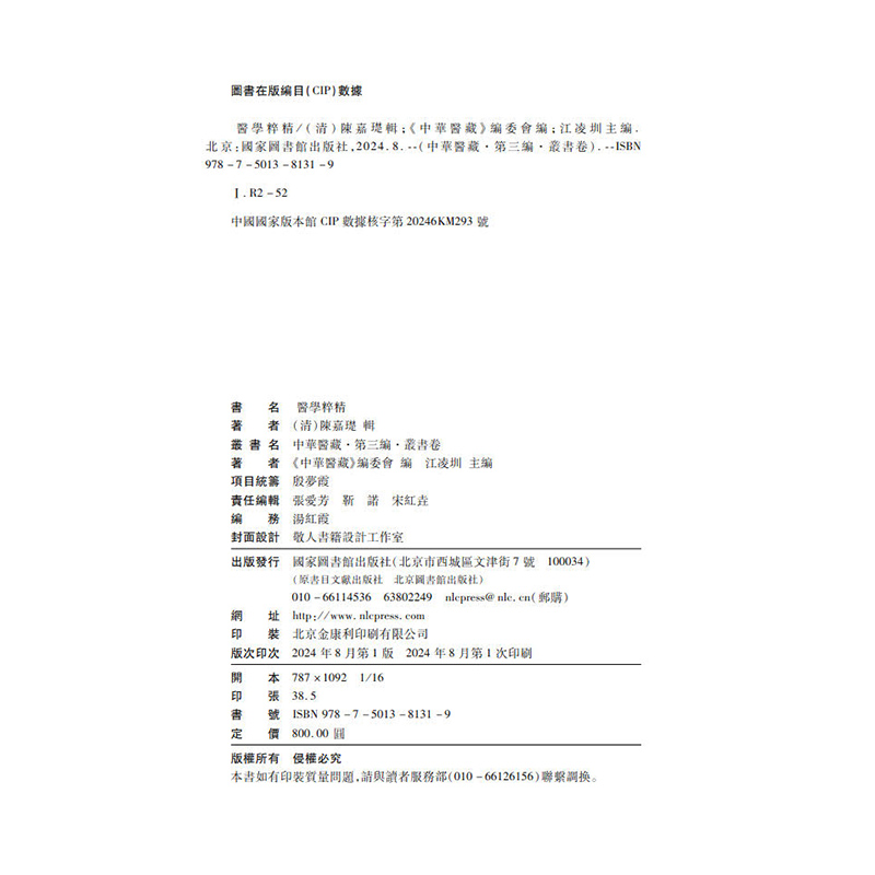 陈嘉璴 清 辑 国家图书馆出版 9787501381319 中华医藏第三编丛书卷医学粹精 社 全一册