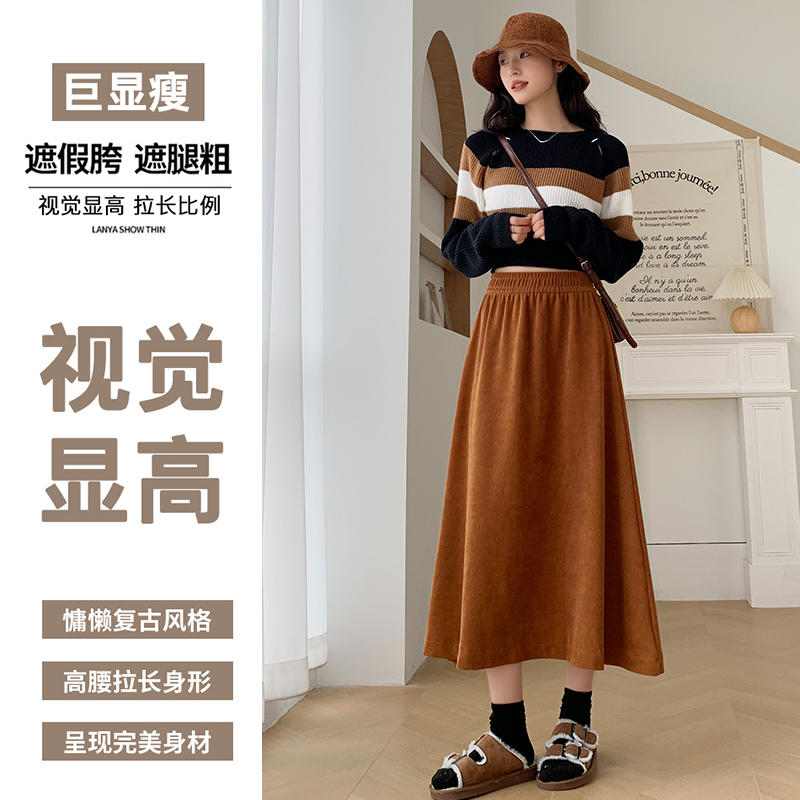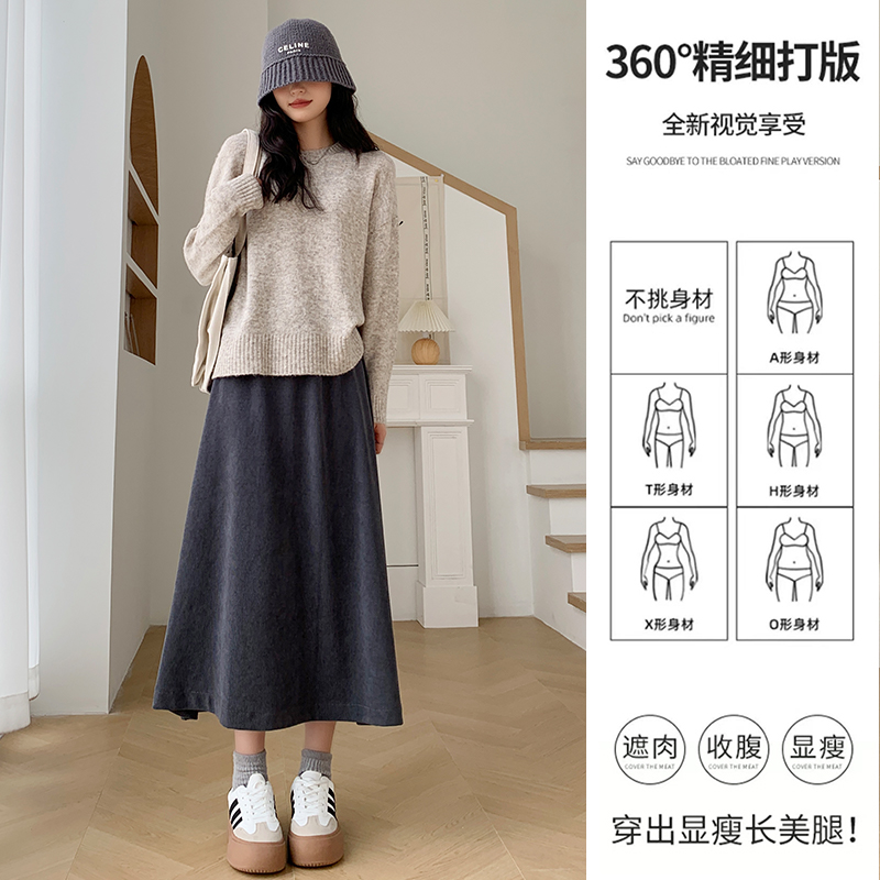 伞裙子 高腰显瘦a字中长款 美拉德针织半身裙女春秋冬季 2024新款
