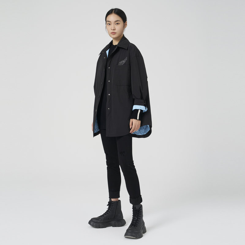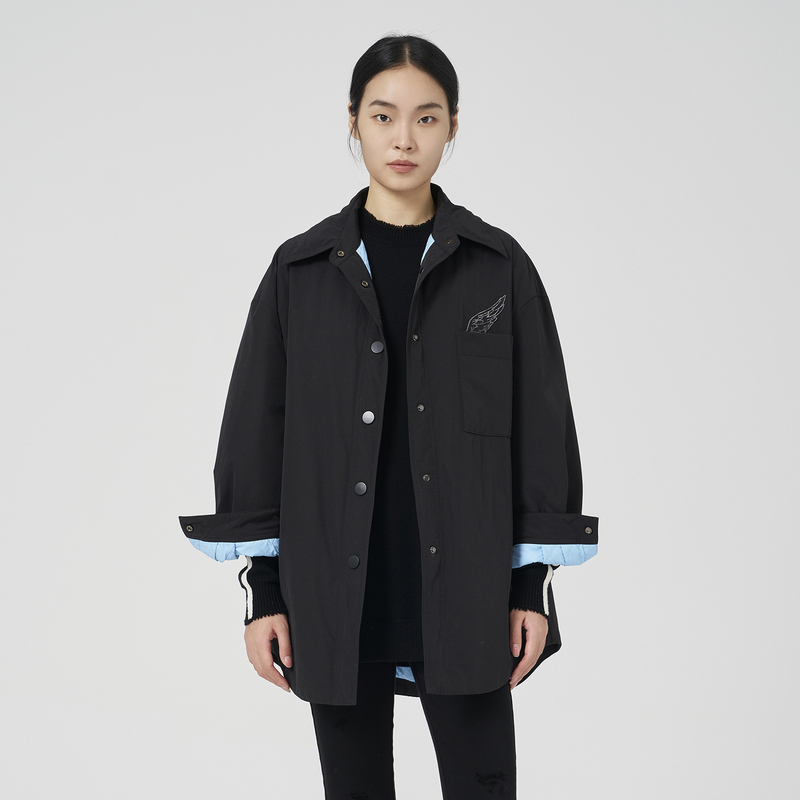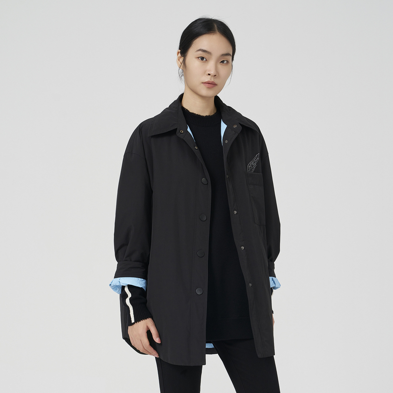 型翻领轻薄简约羽绒服女中长款 衬衫 黑色鸭绒羽绒外套 新款 OTT冬季
