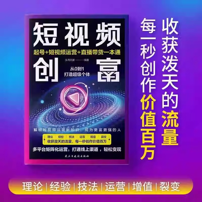 短视频创富 抖音快手小红书软件图像处理摄影运营教材直播带货新媒体起号制作剪影视频剪辑实用从入门到精通吸粉引流教程书籍正版