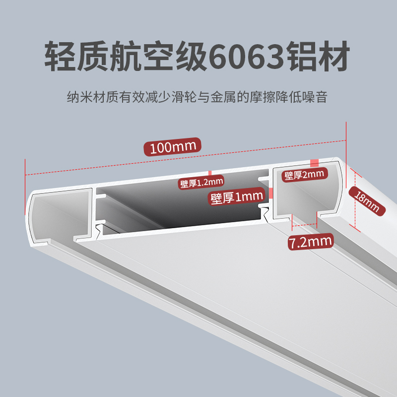 特厚铝合金窗帘轨道挂钩式 滑轨滑轮直轨导轨侧阳台窗帘杆滑道静音