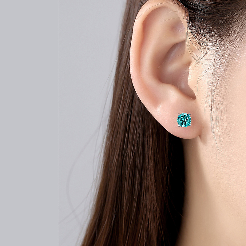 S999纯银彩色天然淡水珍珠耳钉女养耳洞睡觉免摘耳环小众高级耳饰