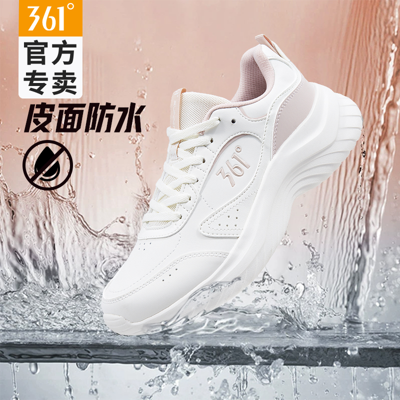 女皮面旅游鞋 安踏轻便防泼水跑鞋 减震休闲运动鞋 软底跑步鞋 女秋季