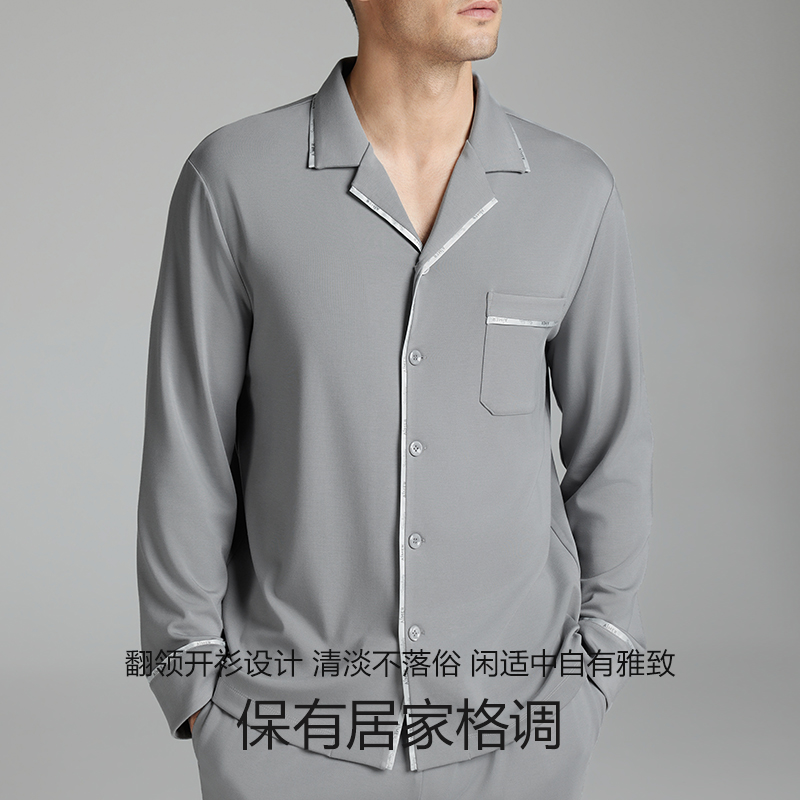 子家居服套装 爱慕先生燚家族睡衣男女情侣款 裤 长袖 可外穿翻领开衫