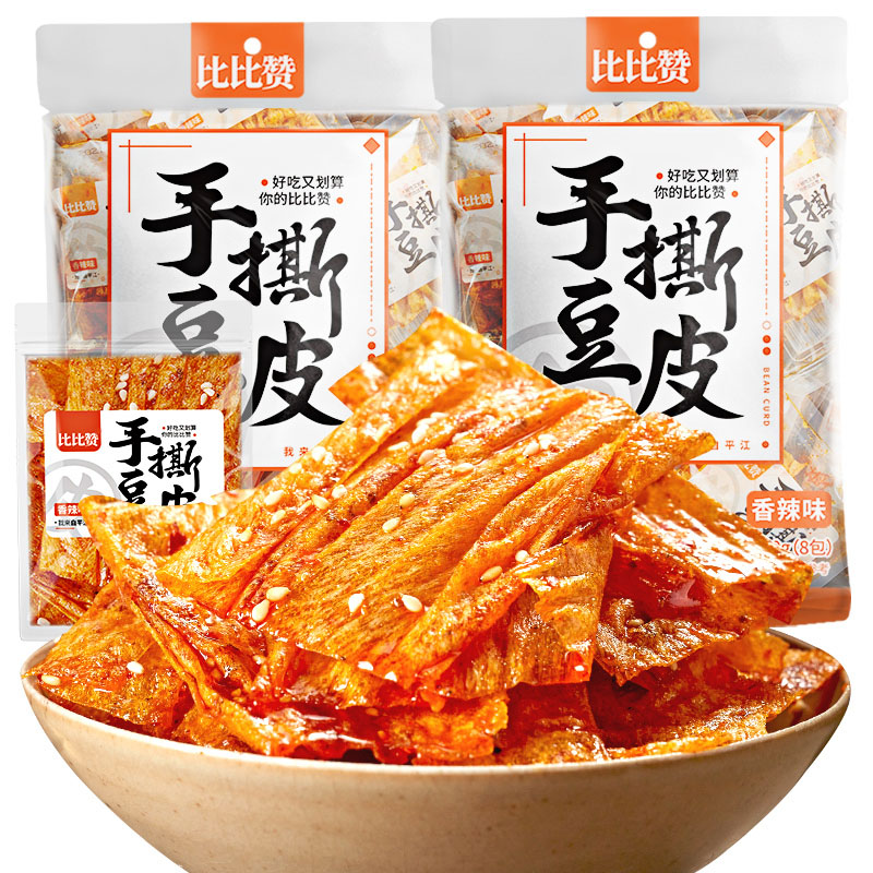 比比赞手撕豆皮辣条豆干麻辣片零食网红爆款 解馋小吃休闲食品批发