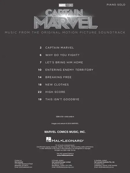 Toprak 惊奇队长 乐谱书 托普拉克 CAPTAIN Solo 钢琴独奏 Piano 电影音乐选集 HL294991 海伦德原版 MARVEL Pinar