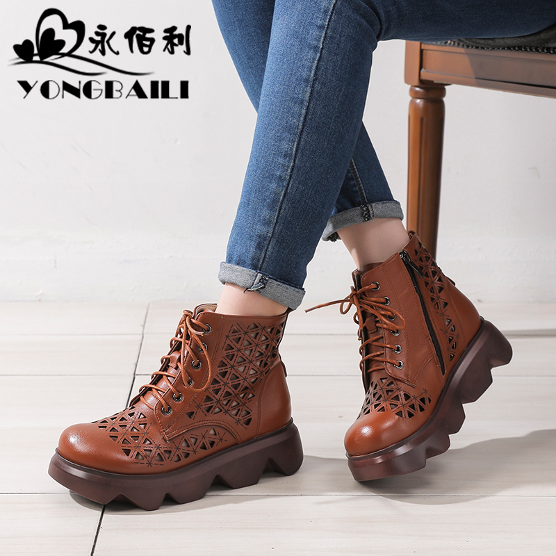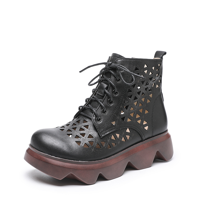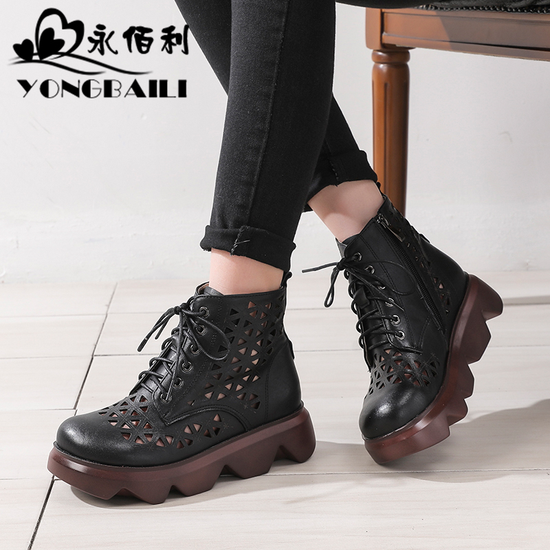 牛皮凉鞋 厚底真皮镂空凉靴2025春新款 皮靴子女英伦风马丁靴洞洞鞋
