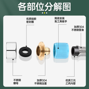 水龙头进水管防爆马桶热水器冷热上水管304不锈钢编织软管配件
