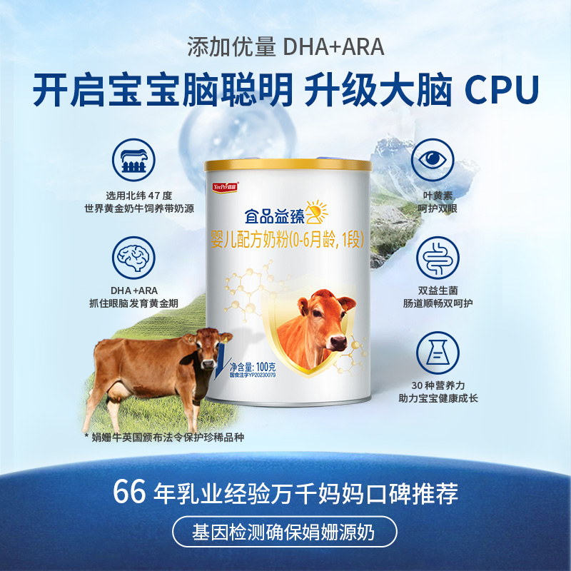 0元 宜品益臻娟姗牛奶粉婴儿新生儿1段100g试用装 试喝 新国标