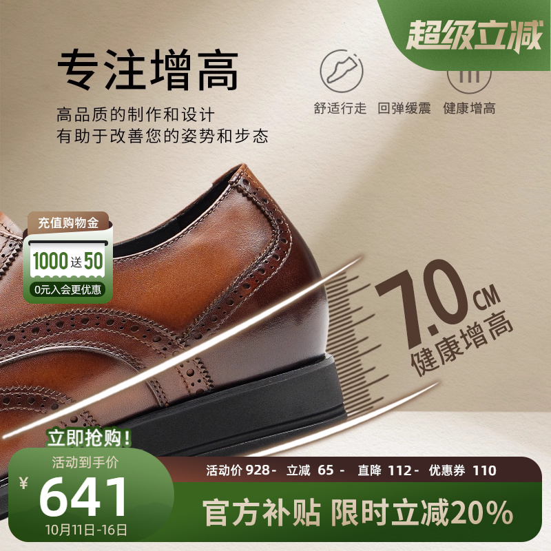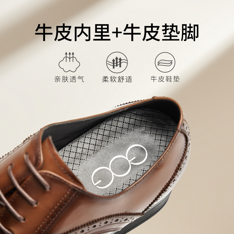 子轻奢内增高婚鞋 轻便通勤鞋 男高级感布洛克雕花男鞋 高哥增高皮鞋