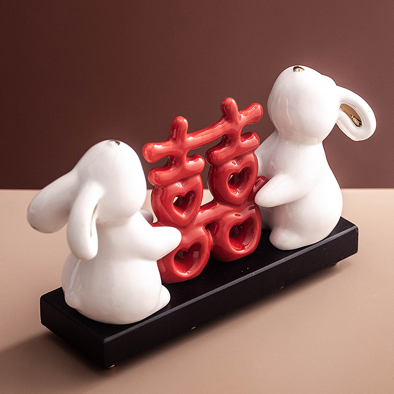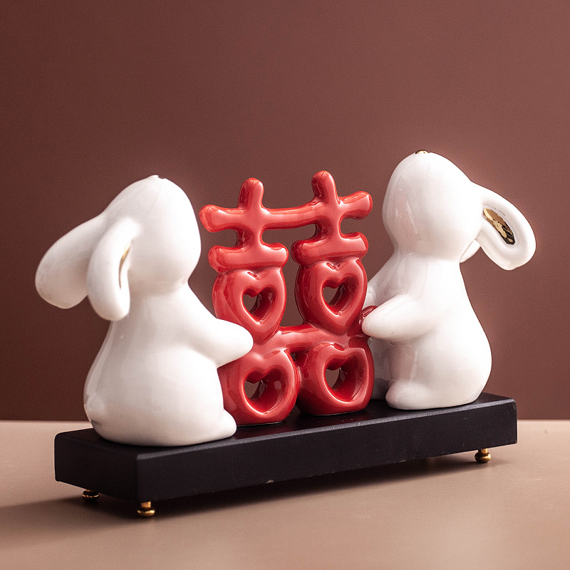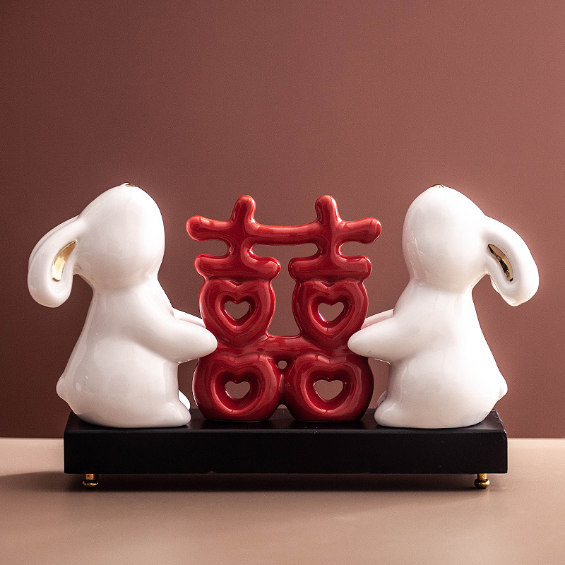 创意兔子摆件轻奢婚房装 饰品高档婚庆送新人闺蜜结婚礼物情侣新婚