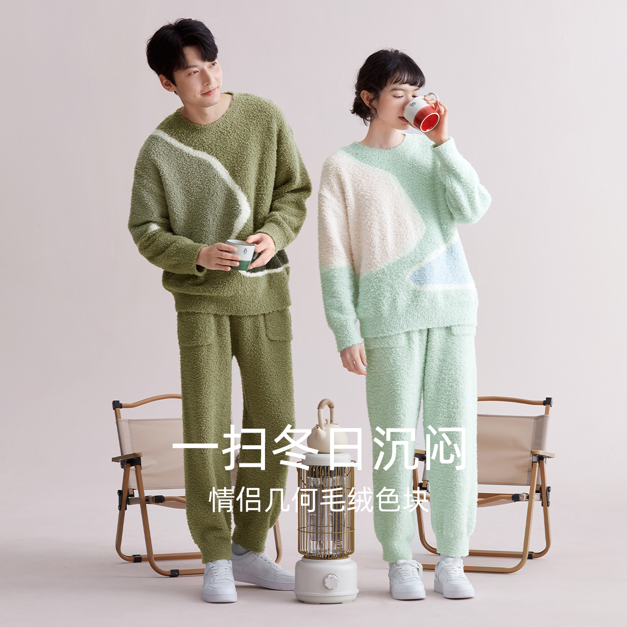 休闲 红豆半边绒家居服抗静电保暖睡衣情侣可外穿套头冬款 预售